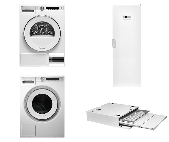 В комплект Asko Style 13 входит 3 прибора и аксессуар: стиральная машина W6098X.W/3, сушильная машина T608HX.W, сушильный шкаф DC7784 V.W и полка с корзиной HDB1153W. Вся техника выполнена в классическом белом цвете.
