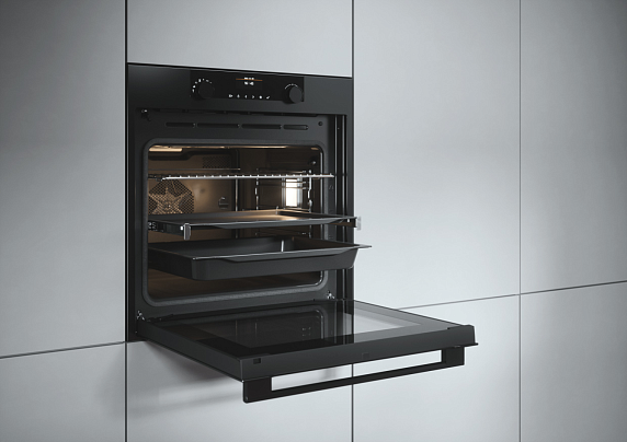 Особенностью модели является охлаждаемая дверца, обеспечивающая безопасность даже при высоких температурах. Дверца оснащена четырьмя слоями стекла, которые усиливают теплоизоляцию и повышают эффективность работы. Встроенный вентилятор охлаждения поддерживает оптимальную температуру внутри шкафа, предотвращая перегрев и снижая энергопотребление. Плавное движение дверцы добавляет комфорта: она открывается и закрывается мягко, исключая риск случайных ударов или резкого захлопывания.