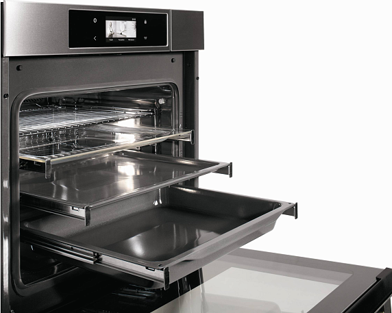 Телескопические направляющие на трёх уровнях существенно повышают удобство использования техники и безопасность при приготовлении пищи. Такая система позволяет легко ставить и вынимать противни и формы. Главное преимущество — это плавное выдвижение. Данные модели также оснащены стопорной системой, которая предотвращает случайное выпадение или выскальзывание противней при их выдвижении.