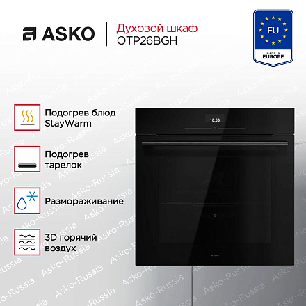 Духовой шкаф ASKO OTP26BGH — это современное решение для тех, кто ценит качество и стиль в каждой детали интерьера. Это устройство отличается изысканным дизайном, который удачно сочетает в себе эстетику и функциональность. Черное стекло фасада придает ему строгость и элегантность, а цветной TFT-дисплей делает управление интуитивно понятным и удобным.