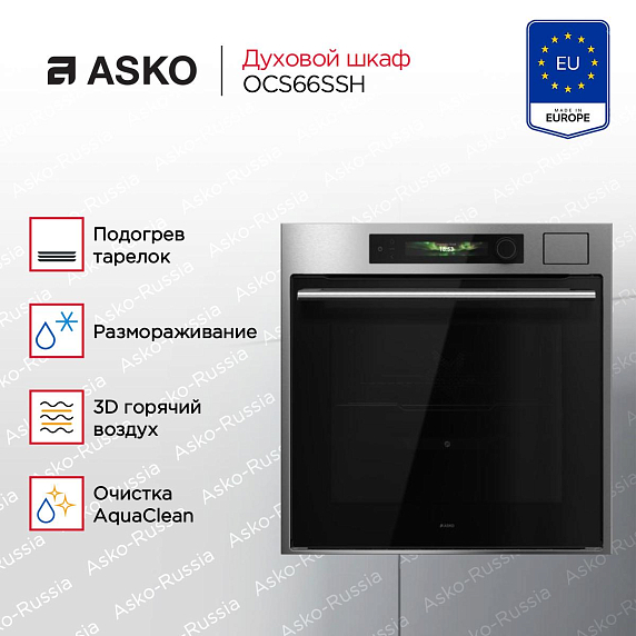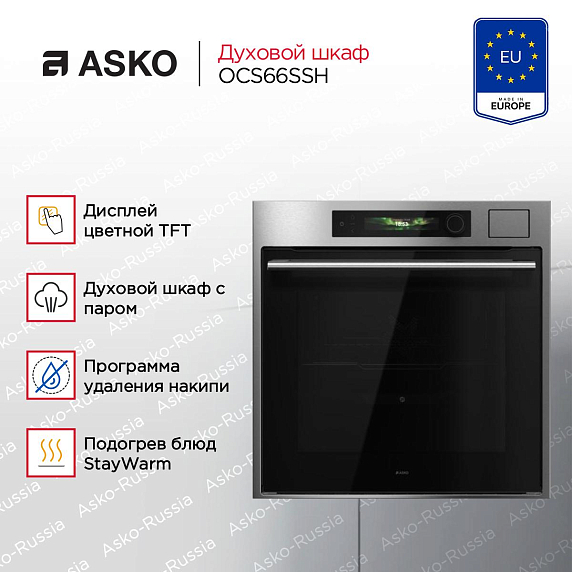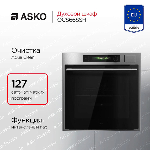 Духовой шкаф Asko OCS66SSH — это высококачественное устройство, произведенное в Словении, которое сочетает в себе передовые технологии и стильный дизайн. Эта модель из серии CRAFT обладает элегантным внешним видом, выполненным в цвете нержавеющей стали, что придает ей современный и привлекательный вид. Дисплей TFT, цветной и сенсорные поворотные элементы управления делают использование этого духового шкафа удобным и интуитивно понятным.