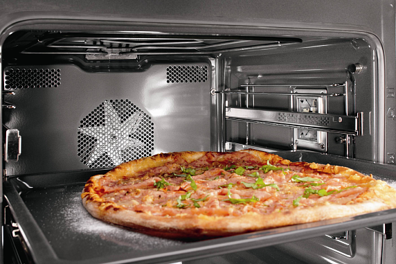 Вентилятор обеспечивает эффективное охлаждение устройства. Во время и по завершении приготовления блюд внутренняя камера остаётся нагретой. Механизм включается автоматически, чтобы вывести лишний жар. Воздух внутри духовки начинает циркулировать, помогая снизить температуру или предотвратить перегревание системы. Прикасаться к дверце станет достаточно безопасно, а мебель рядом не повредится.