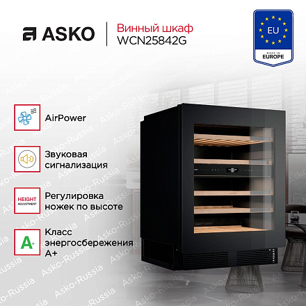 Винный шкаф Аско WCN25842G рассчитан на две температурные зоны — например, для белого и красного вина. Внутри можно разместить до 38 бутылок объемом 0,75 литра, гарантируя надежное хранение для вашей коллекции. Одна камера обеспечивает оптимальное расположение функциональных деталей, облегчая доступ к содержимому и поддерживая стабильную температуру и влажность. Полок пять, все они деревянные — не вибрируют и не дребезжат, это оптимальное решение для сохранности напитков. Конструкция защищает бутылки не только от вибрации и перепадов температуры, но также от света.