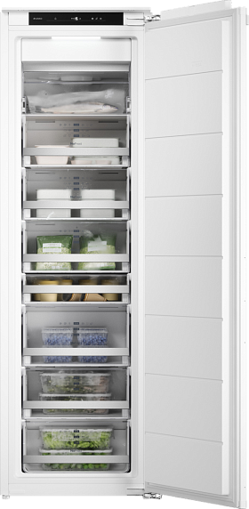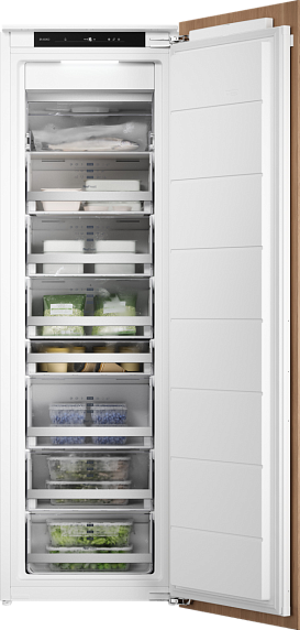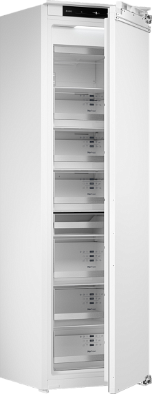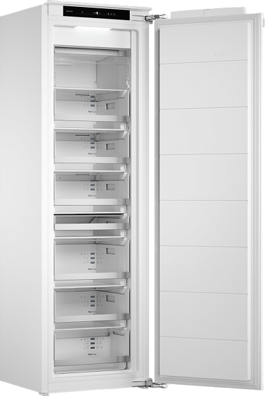 Управление камерой осуществляется с помощью удобного и интуитивно понятного электронного дисплея. Режим Fast Freeze позволяет быстро замораживать продукты, сохраняя их свойства и вкус. Мощность замораживания составляет 10 кг за 24 часа. Внутреннее освещение на основе LED-технологии обеспечивает равномерное и яркое освещение, что упрощает поиск необходимых продуктов.