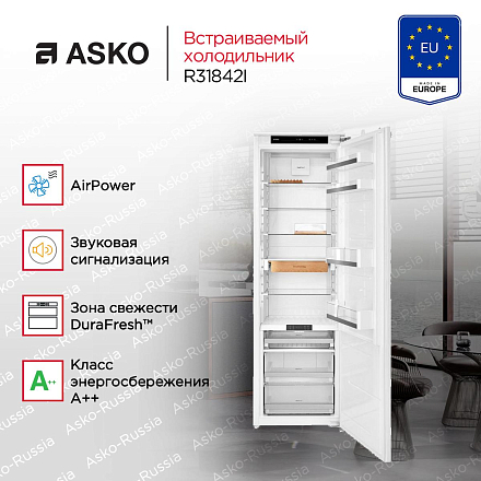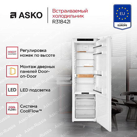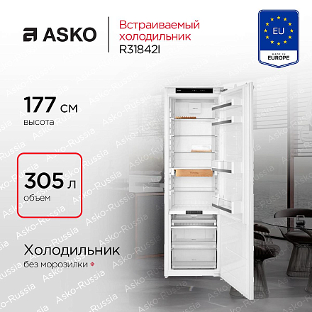 Встраиваемый холодильник Asko R31842I — это современное решение для вашей кухни, которое сочетает в себе стильный дизайн и передовые технологии. Белоснежный корпус изготовлен в Сербии и имеет компактные размеры: высота составляет 177.2 см, ширина — 55.5 см и глубина — 54.5 см, что позволяет легко встроить его в любую нишу размером 177.5-178×56-57×56 см.