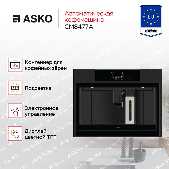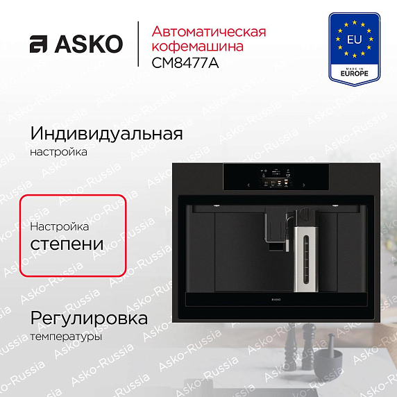 Автоматическая кофемашина Asko CM8477A выполнена в стильном дизайне в цвете «антрацит», благодаря чему идеально впишется в любой современный интерьер.