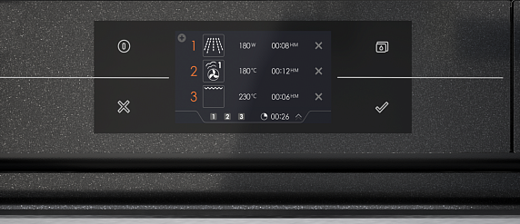 Гидролитическая очистка духовки Aqua Clean с помощью пара обеспечивает эффективное и удобное очищение внутренней камеры от жира и остатков пищи. Для этого в противень необходимо налить примерно 200-300 мл воды и активировать соответствующую функцию. Температура начнёт подниматься, образуя пар. Горячий влажный воздух размягчает загрязнения на стенках и дне техники. После чего их остается только вытереть.
