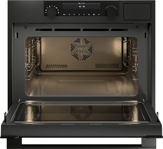 В духовом шкафу Аско OCSM8487A1 можно приготовить любые блюда, даже если в кулинарии вы новичок. 143 предустановленных программы позволяют получить без усилий пиццу, пирог, индейку, сделать су-вид и другие виды еды. Достаточно нажать кнопку — температура и время уже рассчитаны. Автоматический режим запекания мяса позволяет получить хрустящую корочку и сочную середину. При использовании микроволн не нужен поворотный стол — так что можно готовить на обычном противне. Управление электронное: сенсоры и ручные переключатели позволяют выбрать готовый рецепт или задать температуру с точностью до градуса. Есть дисплей, на котором отображаются все показатели, и таймер. Очищать камеру легко благодаря опции Aqua Clean — она обеспечивает выработку пара, который в течение получаса размягчает даже сильные загрязнения.