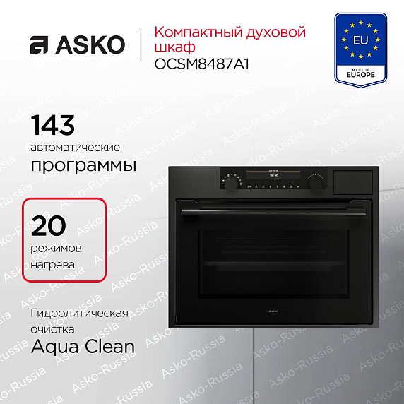 Компактный духовой шкаф Asko OCSM8487A1 из серии Craft оснащен современным функционалом, который позволяет каждому готовить дома как в мишленовском ресторане. Прибор уменьшенный, всего 45 см в высоту, подойдёт даже для маленькой кухни. Устанавливается в колонну или под столешницу. Приготовление осуществляется равномерно благодаря технологии 5 Air Flow. На задней стенке расположены пять отверстий, сквозь которые проходит горячий воздух.