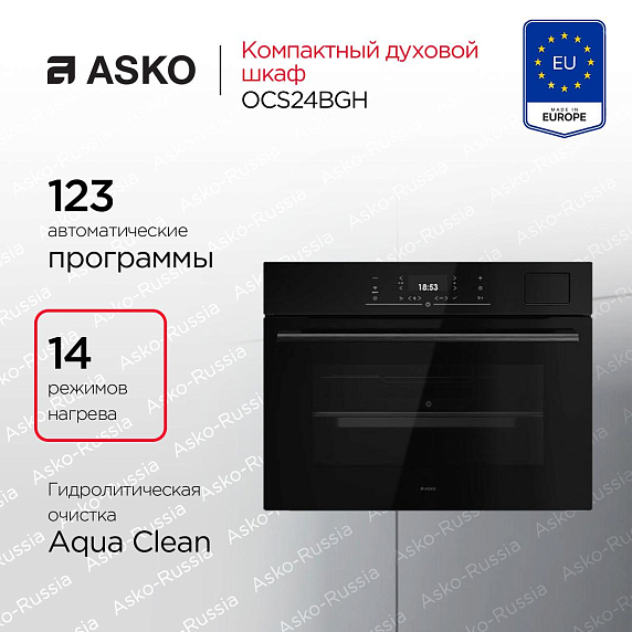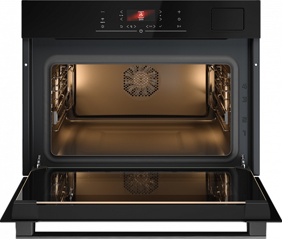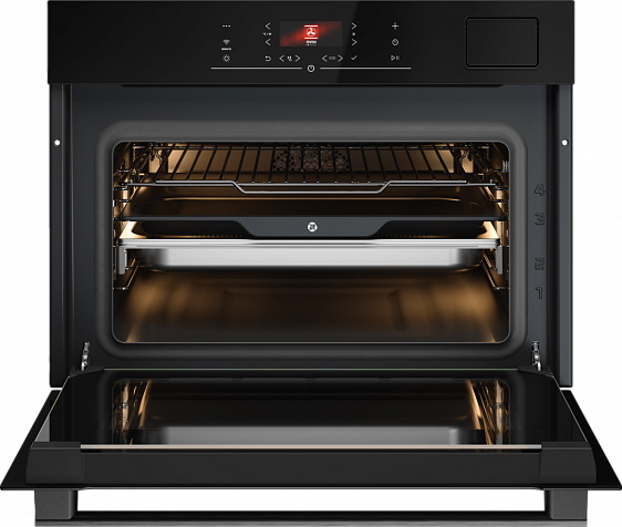 - Гидролитическая очистка Aqua Clean, точность Celsius Cooking™ до 1°C и съёмное остекление дверцы упрощают уход и повышают комфорт эксплуатации.