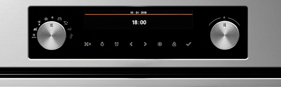 Управление ручкой JogDial представляет собой два утапливаемых поворотных регулятора. Они плавно переключают параметры, выводимые на чёткий текстовый дисплей. Как правило, такая система навигации состоит из двух ручек. С помощью левой можно настраивать необходимые режимы функционирования духового шкафа. Правая же отвечает за выбор настроек.