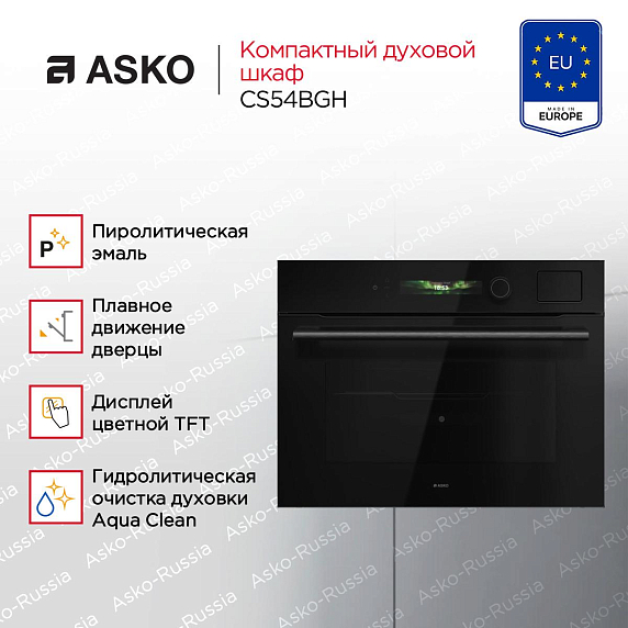 Духовой шкаф ASKO OCS54BGH из премиальной серии CRAFT — это образец сдержанного скандинавского дизайна и инженерной продуманности. Его фронтальная панель из чёрного стекла с тонкими рамками и скрытыми петлями идеально вписывается в современные кухонные ансамбли, подчёркивая лаконичность интерьера. Дверца UltraCoolDoorQuadro+ с четырёхслойным остеклением остаётся прохладной снаружи даже при высоких температурах внутри, а возможность снять стеклопакет упрощает уход. Плавный ход открывания добавляет комфорта в повседневной эксплуатации.