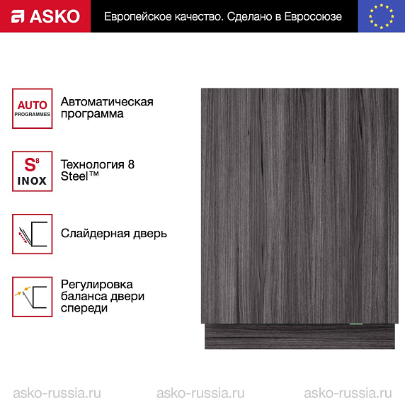 Встраиваемая посудомойка обладает мощностью подключения 1.9 кВт и энергопотреблением 0.64 кВт/цикл, что делает ее достаточно экономичной. Годовое энергопотребление составляет всего 184 кВтч. Устройство работает от напряжения в 220-240 В и частоты тока 50/60 Гц. Сила тока составляет 10 А. Машина отлично экономит воду, расходуя всего 9.2 литра на цикл и 2576 литров в год. Уровень шума при работе достаточно низкий и составляет всего 39 дБ, что позволяет не беспокоиться о возможном дискомфорте. Вес нетто устройства составляет 44.5 кг, а в упаковке — 47.5 кг. Длина заливного и сливного шланга составляет 1.63 и 2 метра соответственно, а длина кабеля — 1.73 метра. Требуемое давление воды при заливе варьируется от 0.03 до 1 MPa. Максимальная температура, которую может достигать вода в машине, составляет 70°C. Встраиваемая посудомойка от ASKO имеет удобные размеры упаковки: высота — 89 см, ширина — 64 см, глубина — 68 см. Дизайн продуман до мелочей: внутреннее освещение обеспечивают два светодиода LED, что позволяет легко контролировать процесс мытья посуды. В комплекте предусмотрены верхняя и нижняя корзины Exclusive, изменяемые по высоте для удобства размещения посуды разных размеров. Также в комплекте есть корзина и верхний лоток для столовых приборов, полка и фиксаторы для винных бокалов, а также фиксаторы для пластиковой посуды Light Lock. Интересной особенностью является возможность изготовления двери на заказ размером от 720 до 800 мм. Это позволяет максимально гармонично вписать машину в интерьер кухни, подобрав идеальный размер дверцы.