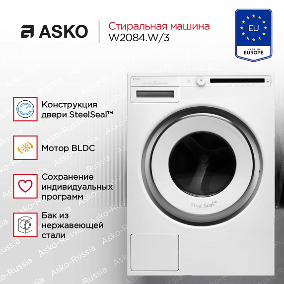 Стиральная машина Asko W2084.W/3 — одна из новинок бренда, быстро ставшая популярной среди покупателей. Её отличает гармония форм, универсальный белый цвет, особый комфорт и многофункциональность, способные сделать стирку приятным и простым занятием. Этому европейскому бренду, выпускающему отличную бытовую технику присуща забота о высоком качестве, экономном расходе электроэнергии и других ресурсов, а также внедрении передовых технологий.
