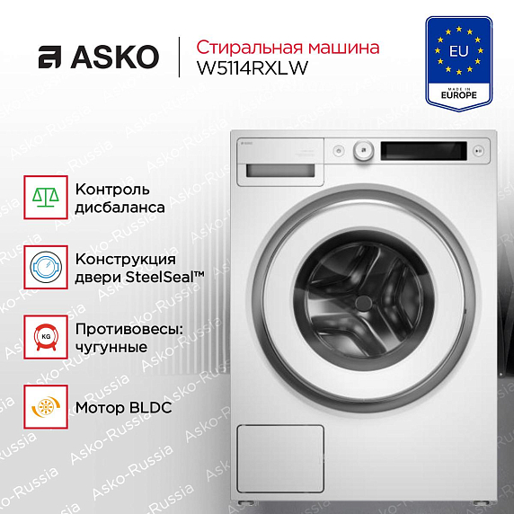 Стиральная машина Asko W5114RXLW из серии Style - это идеальный выбор для вашего дома. Изготовленная в Словении, она сочетает в себе передовые технологии и стильный дизайн. Белый цвет корпуса и панели управления гармонично вписываются в любой интерьер, а цветной TFT дисплей обеспечивает удобное управление. Высота устройства составляет 85 см, ширина - 59.5 см, а глубина - 68.7 см, что позволяет разместить его в любом удобном месте. Фронтальная загрузка и объем барабана в 80 литров позволяют обрабатывать до 11 кг белья за одну стирку. Подсветка барабана добавляет комфорт в использовании, а скорость отжима до 1400 об/мин обеспечивает эффективное удаление влаги.
