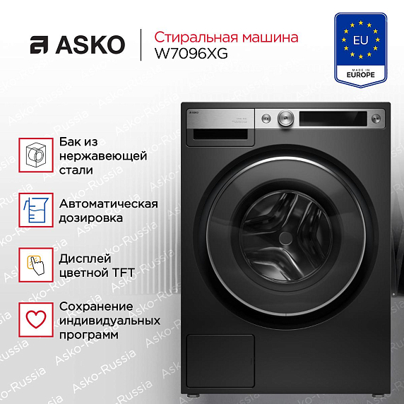 Стиральная машина ASKO W7096XG из серии Style – это настоящая находка для вашего дома. Ее элегантный дизайн в графитовом черном цвете с панелью управления из нержавеющей стали делает ее не только функциональной, но и стильной. Высота устройства составляет 85 см, ширина – 59.5 см, а глубина – 57.2 см, что позволяет ей идеально вписаться в любое пространство. С фронтальной загрузкой и объемом барабана в 60 литров, она справится с максимальной загрузкой до 9 кг белья. Цветной TFT дисплей обеспечивает легкость управления, а бесщеточный мотор BLDC гарантирует долговечность и надежность работы.