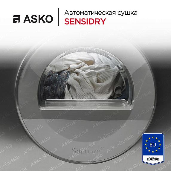 Технология SensiDry™ — это интеллектуальная система управления сушкой, разработанная Asko. Она призвана сделать сушку более бережной и эффективной. С этой технологией температура во время процесса не повышается. Таким образом ткань не перегревается и не деформируется. С SensiDry обеспечивается точный контроль влажности. Как только вещи достигают выставленной пользователем степени сухости, прибор автоматически останавливается. Это позволяет избежать пересушивания. Кроме такого, за счёт низких температур и точного контроля влажности снижает энергопотребление.