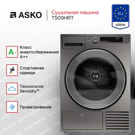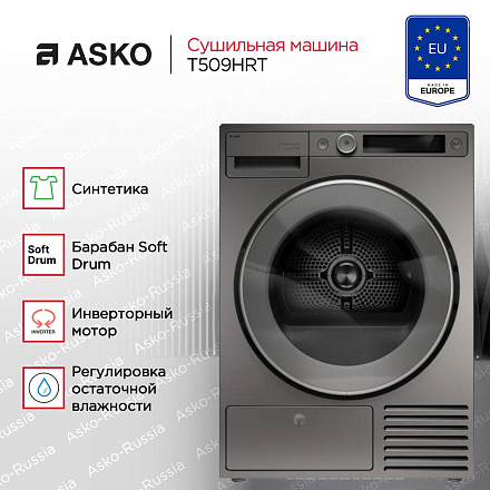Сушильная машина ASKO T309HCW — это элегантное и функциональное решение из серии Classic с белоснежным корпусом и панелью управления в едином стиле. Её лаконичный дизайн легко вписывается в любой интерьер, а возможность перенавесить дверцу делает установку гибкой даже в ограниченном пространстве. Габариты — 85 × 59,5 × 63 см — позволяют разместить прибор как отдельно, так и в колонну с другой техникой. Длина кабеля 210 см упрощает подключение к стандартной сети 220–240 В / 50 Гц.