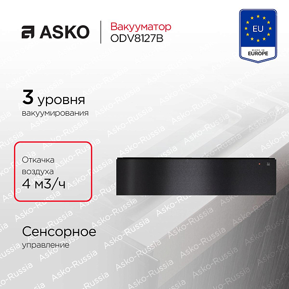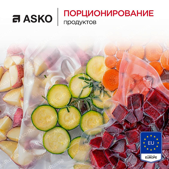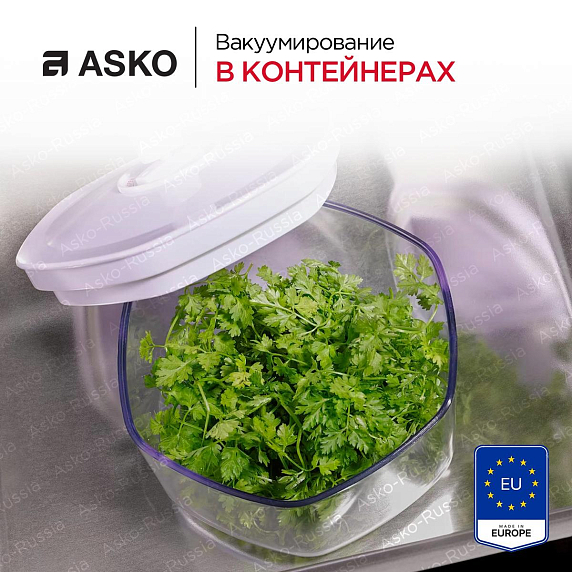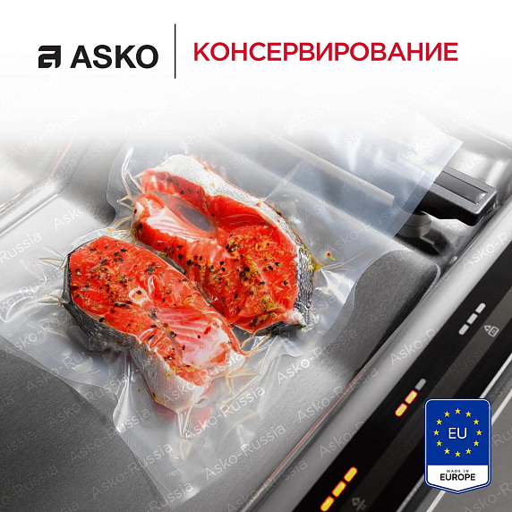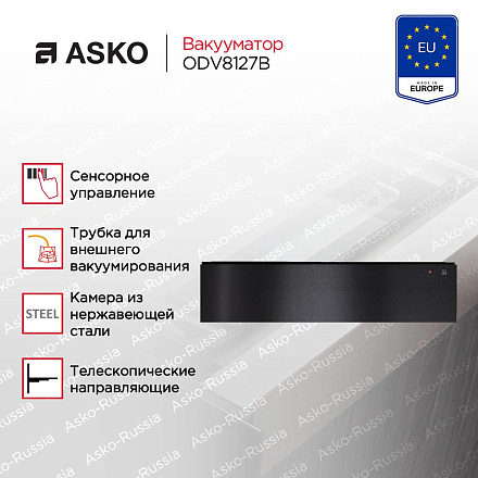 Вакууматор Asko ODV8127B станет незаменимым помощником на Вашей кухне. Устройство работает со стандартными пакетами 25×35 см, что делает эксплуатацию удобнее. Товар выполнен в цвете черная сталь, что подойдет к любой кухне и дополнит его интерьер. Управление осуществляется за счет сенсорной панели, которая находится за фронтальной частью. Благодаря этому она защищена от пыли и других воздействий. Интуитивно понятные кнопки делают навигацию простой и удобной. Выдвигается устройство на телескопических направляющих с фиксацией. Это помогает легко открывать и закрывать девайс. Открывается данная техника по принципу touch2Open. То есть необходимо нажать на фронтальную часть, тогда механизм сработает. Отсутствие ручек гарантируют безопасность данного процесса.