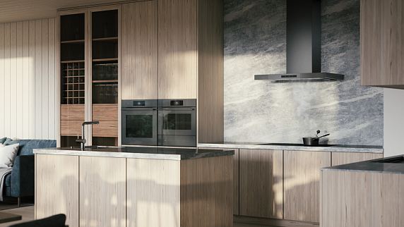Дизайн устройства выполнен в жемчужно-сером цвете, что придает ему элегантный и современный вид. Фасад из стекла и ящик из нержавеющей сталь добавляют устройству прочности и долговечности. Металлическая рамка для бесшовного монтажа обеспечивает гладкую интеграцию устройства в любой интерьер кухни.