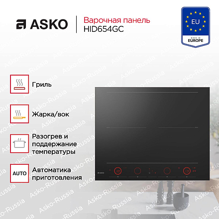 Индукционная варочная панель ASKO HID654GC — это гармоничное сочетание современного дизайна и передовых технологий. Элегантная черная поверхность подчеркивает стиль вашей кухни, а металлическая рамка по периметру добавляет конструкции прочности и завершенности. Гладкое стеклокерамическое покрытие не только выглядит эффектно, но и легко очищается, что особенно важно при ежедневном использовании. Эта модель создана для тех, кто ценит удобство, функциональность и эстетическую целостность пространства.