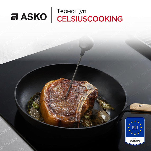 Термощуп CelsiusCooking соединяется с конфоркой и умной посудой CelsiusCooking и предоставляет пользователям точные данные о температуре через модуль Bluetooth. В комплект входит держатель с отверстиями, который нужно надеть на край посуды и вставить остриё зонда сверху. Наконечник должен находиться на расстоянии 1 см или больше от дна утвари. Затем следует дважды коснуться ручки термощупа, чтобы на панели управления появился соответствующий символ. Далее — установить необходимую температуру варки или жарки. Оборудование в процессе готовки будет держать выбранное значение, пока не отключат плиту.