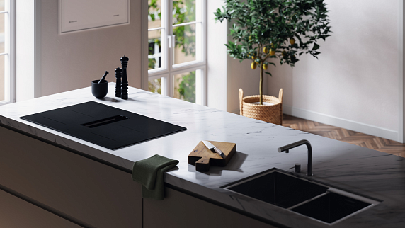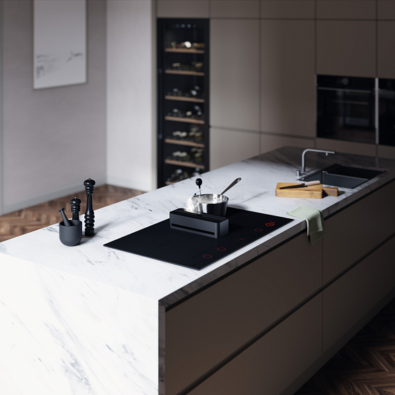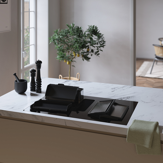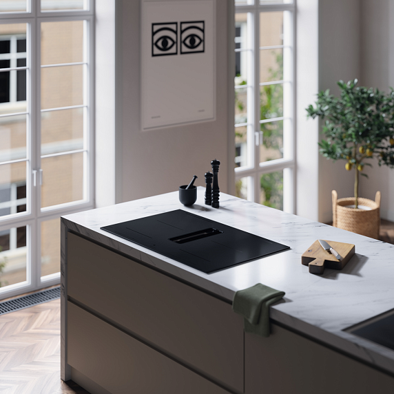Варочная панель со встроенной вытяжкой ASKO HIHD854MM — это современное и функциональное решение для любой кухни. Произведенная в Словении, это высококачественное индукционное устройство отличается уникальным дизайном и продуманной эргономикой. Матовый черный цвет стеклокерамической поверхности добавляет изысканности, а компактные размеры (высота 19.9 см, ширина 83 см, глубина 52 см) позволяют встроить ее в любую кухню, сохраняя гармонию пространства. Особенностью монтажа является расположение в одном уровне со столешницей, что создает гладкую и стильную поверхность.