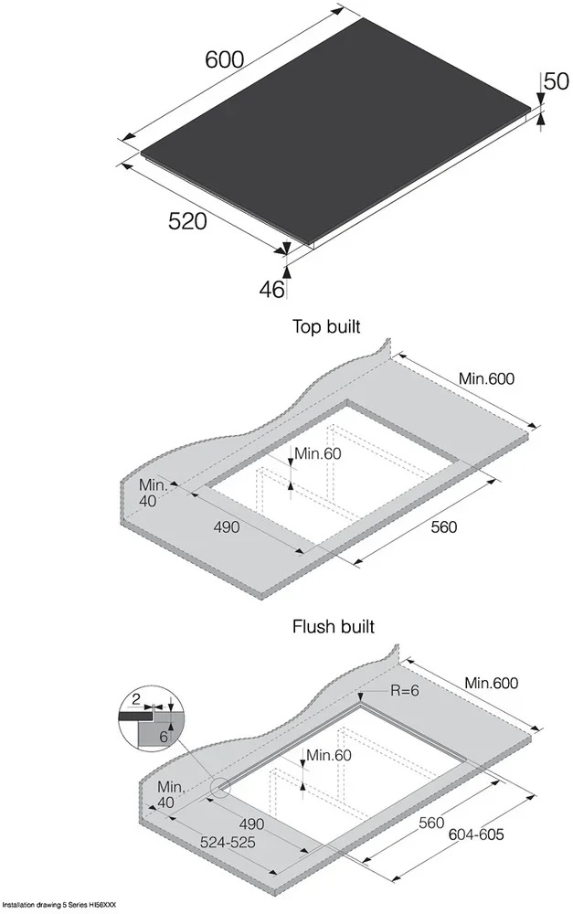 Схема встраивания на русском языке для варочной панели Asko HI5643FMG1