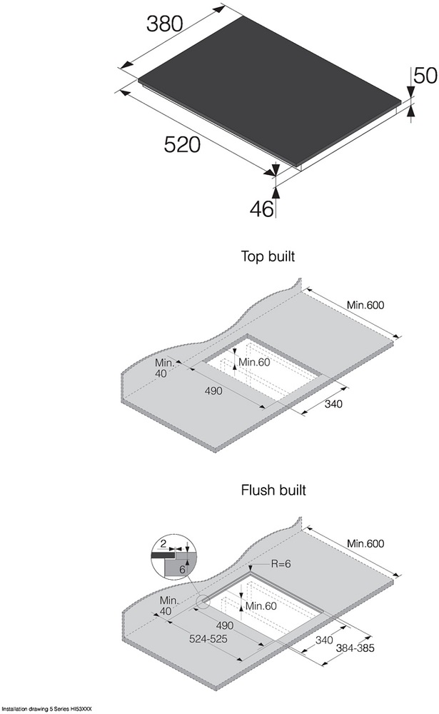 Схема встраивания на русском языке для варочной панели Asko HI5320FBG1