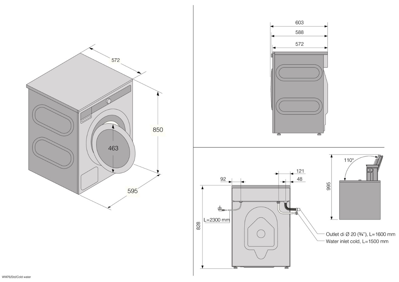 Схема встраивания на русском языке для стиральной машины Asko W3096RW