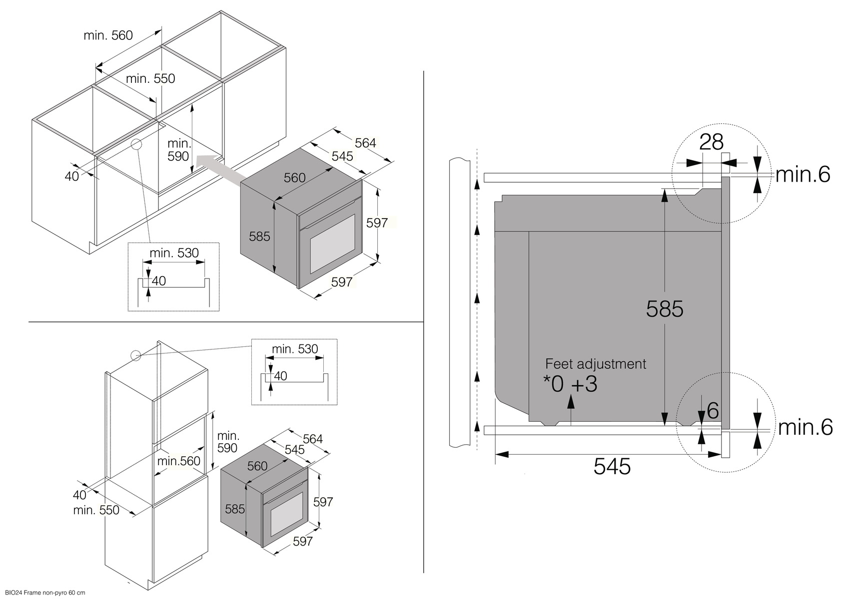 Схема встраивания на русском языке для духового шкафа Asko OCS66GSH