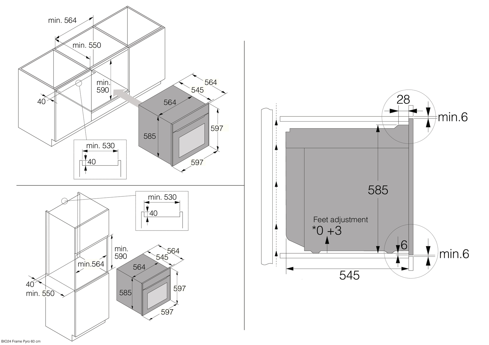 Схема встраивания на русском языке для духового шкафа Asko OCS26BGH