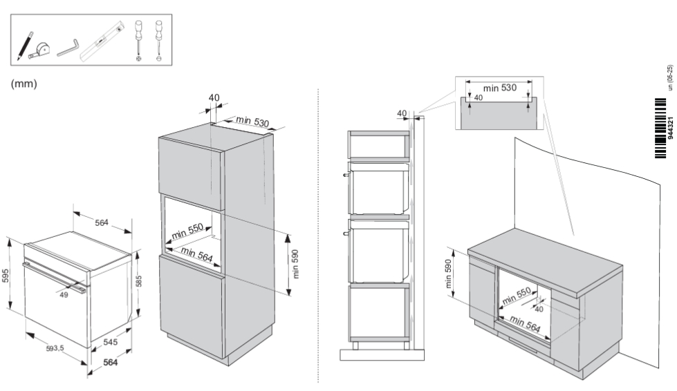 Схема встраивания на русском языке для духового шкафа Asko OTP26BGH