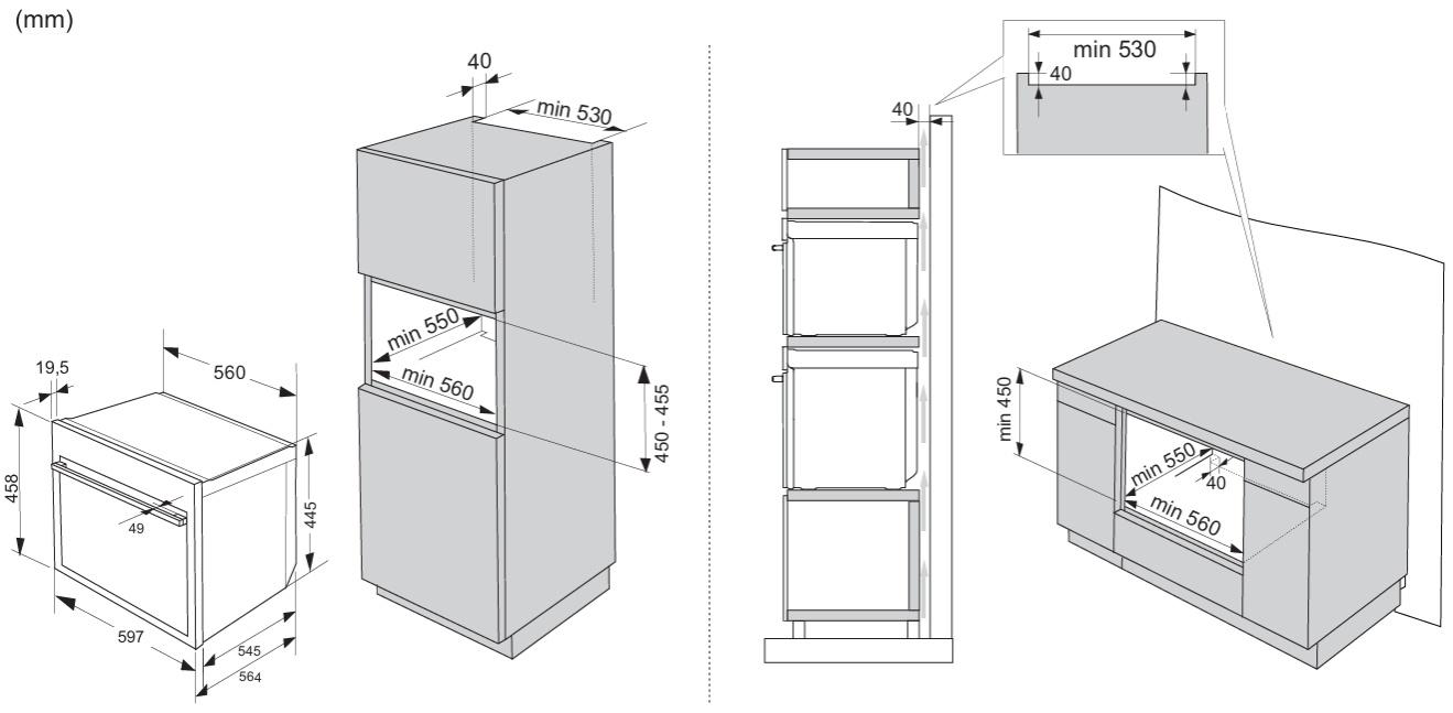 Схема встраивания на русском языке для компактного духового шкафа Asko OCM64SSH