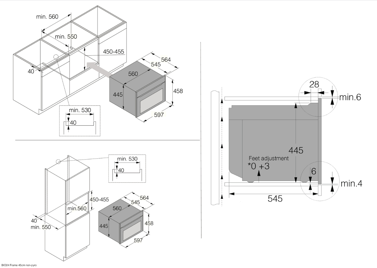 Схема встраивания на русском языке для компактного духового шкафа Asko OCS64GSH