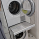 Выдвижная полка удобна в быту: белая, аккуратно встает между стиральной и сушильной машинами.