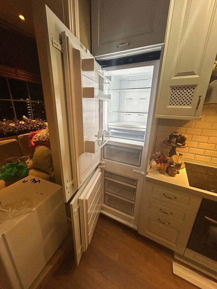 Очень удобный встроенный холодильник с большим объемом и умным управлением. Сенсорные кнопки и LED-дисплей делают использование простым и приятным. Отлично охлаждает и быстро замораживает продукты!